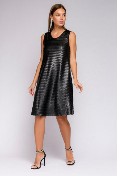 Нарядное черное платье мини с пайетками 1001 DRESS